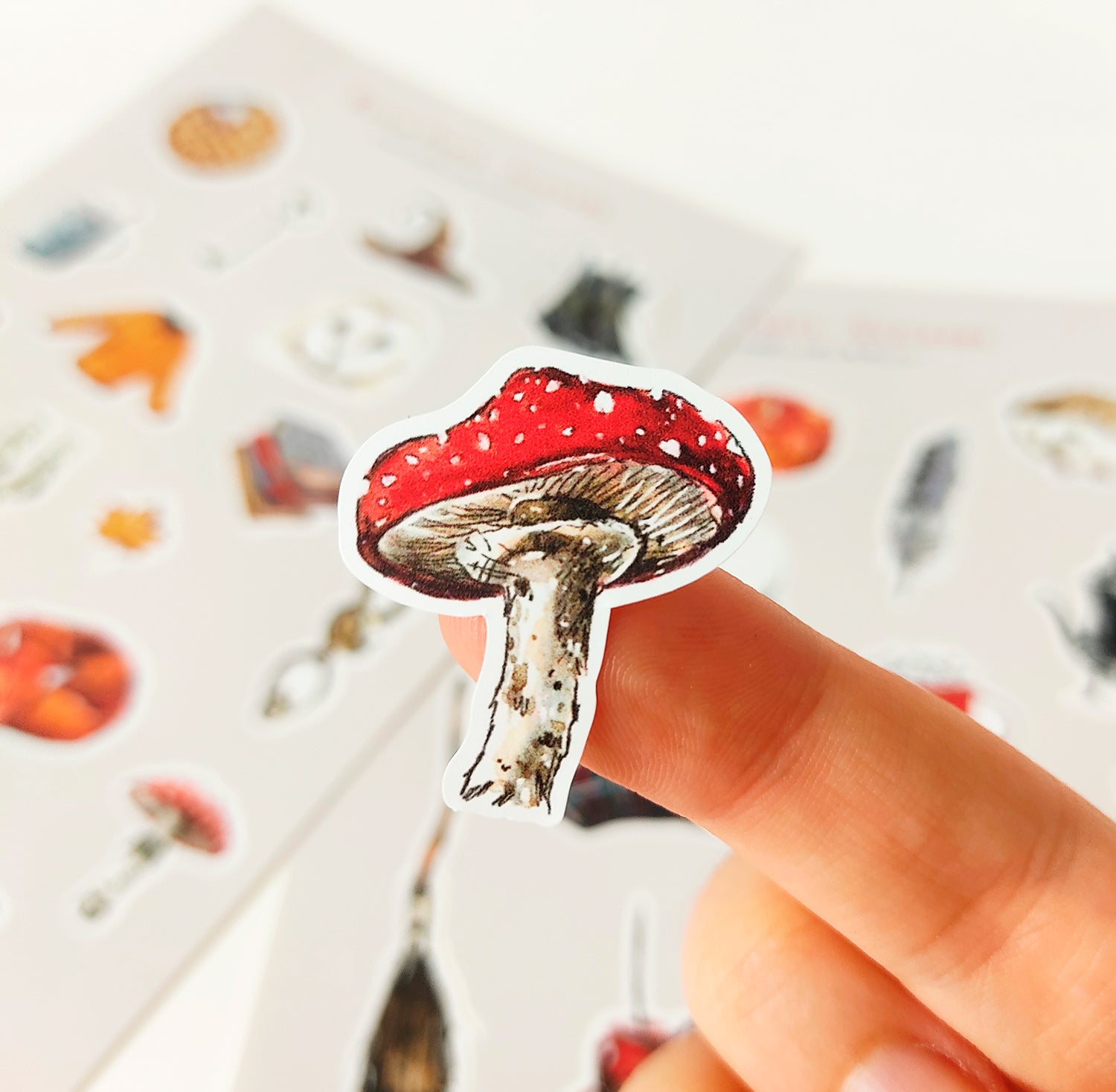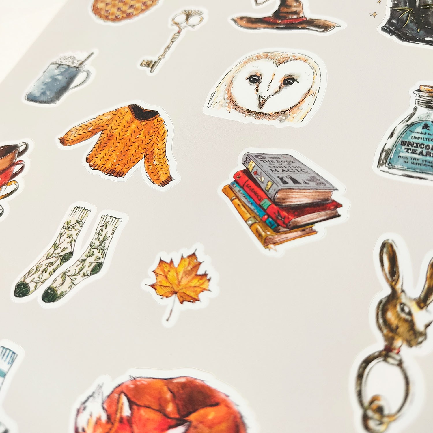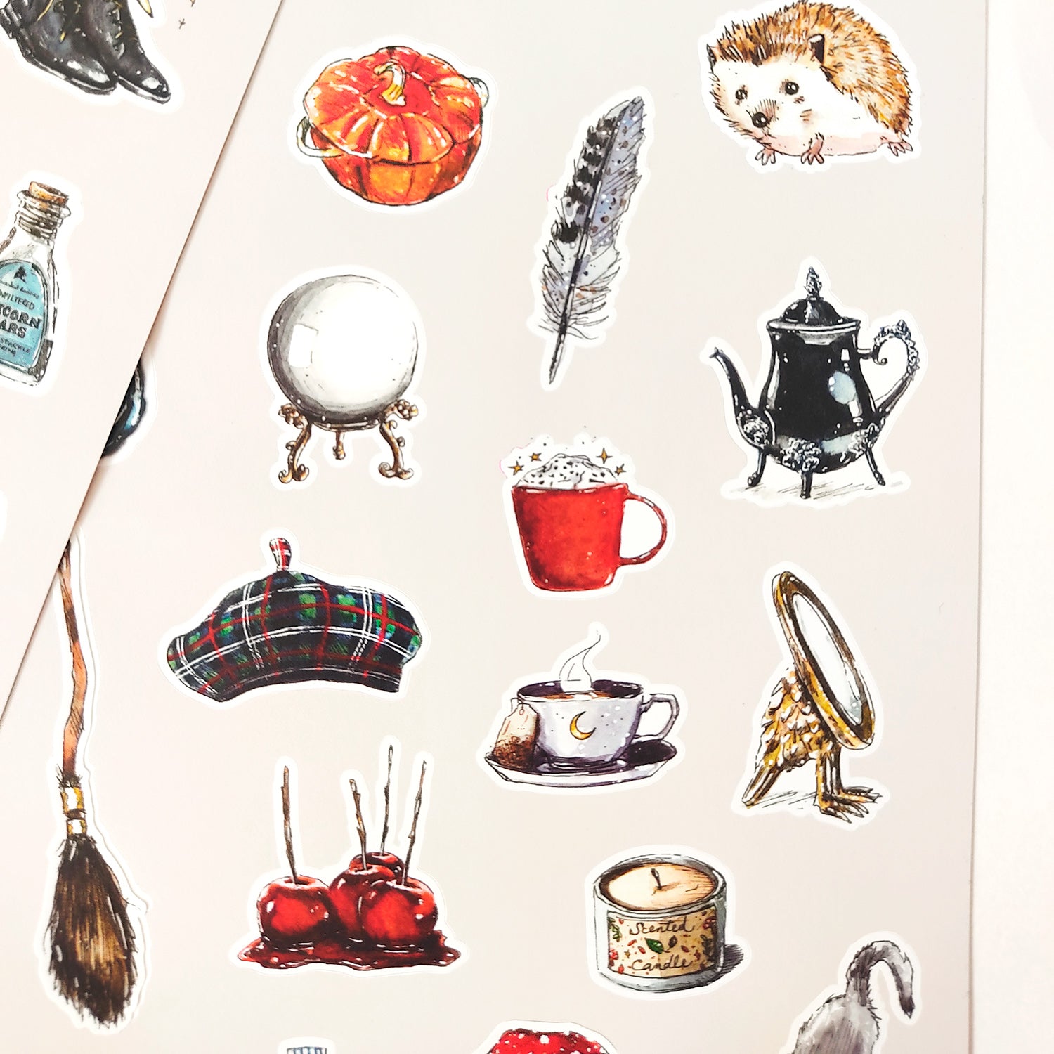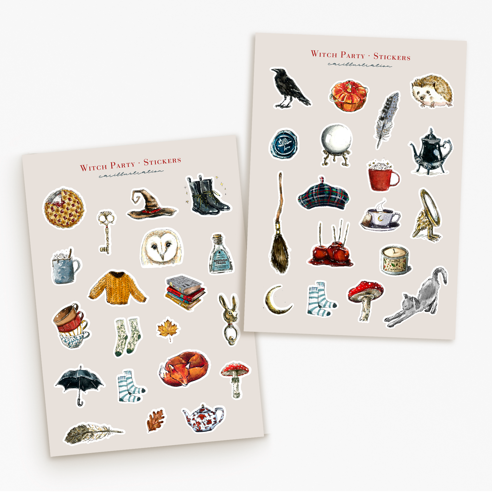With this set of 38 stickers you will be transported to an autumn party. Candy apples, witch hats and brooms, hot and sparkling drinks, adorable animals, cozy clothes, sealing wax and books...