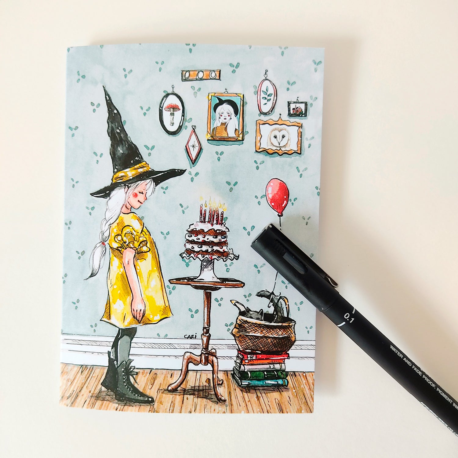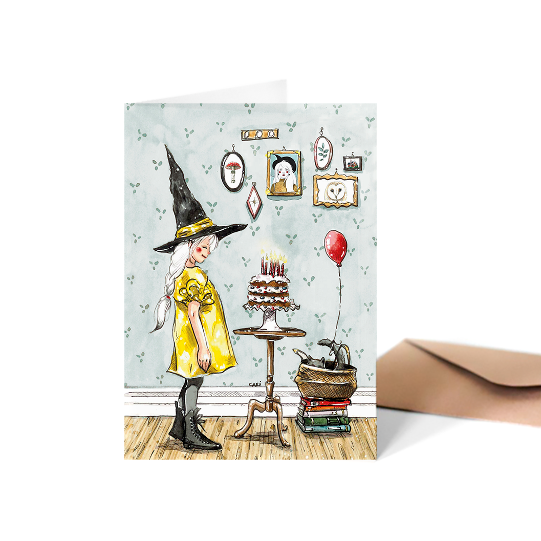 This beautiful illustrated card of a little witch in front of a delicious birthday cake is perfect to give to our favorite people and thank them for bringing magic to our lives ;)