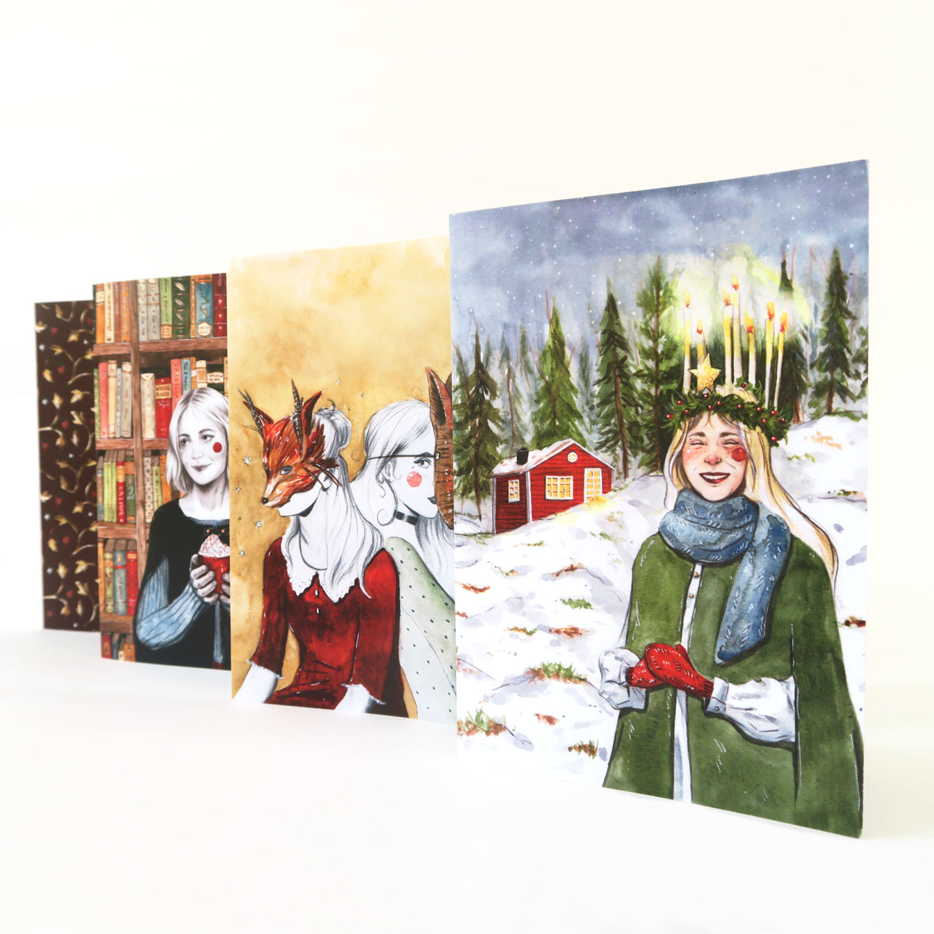- 1 tarjeta tipo díptico, tamaño A6 cuando está plegada (10,5 × 14,8 cm)