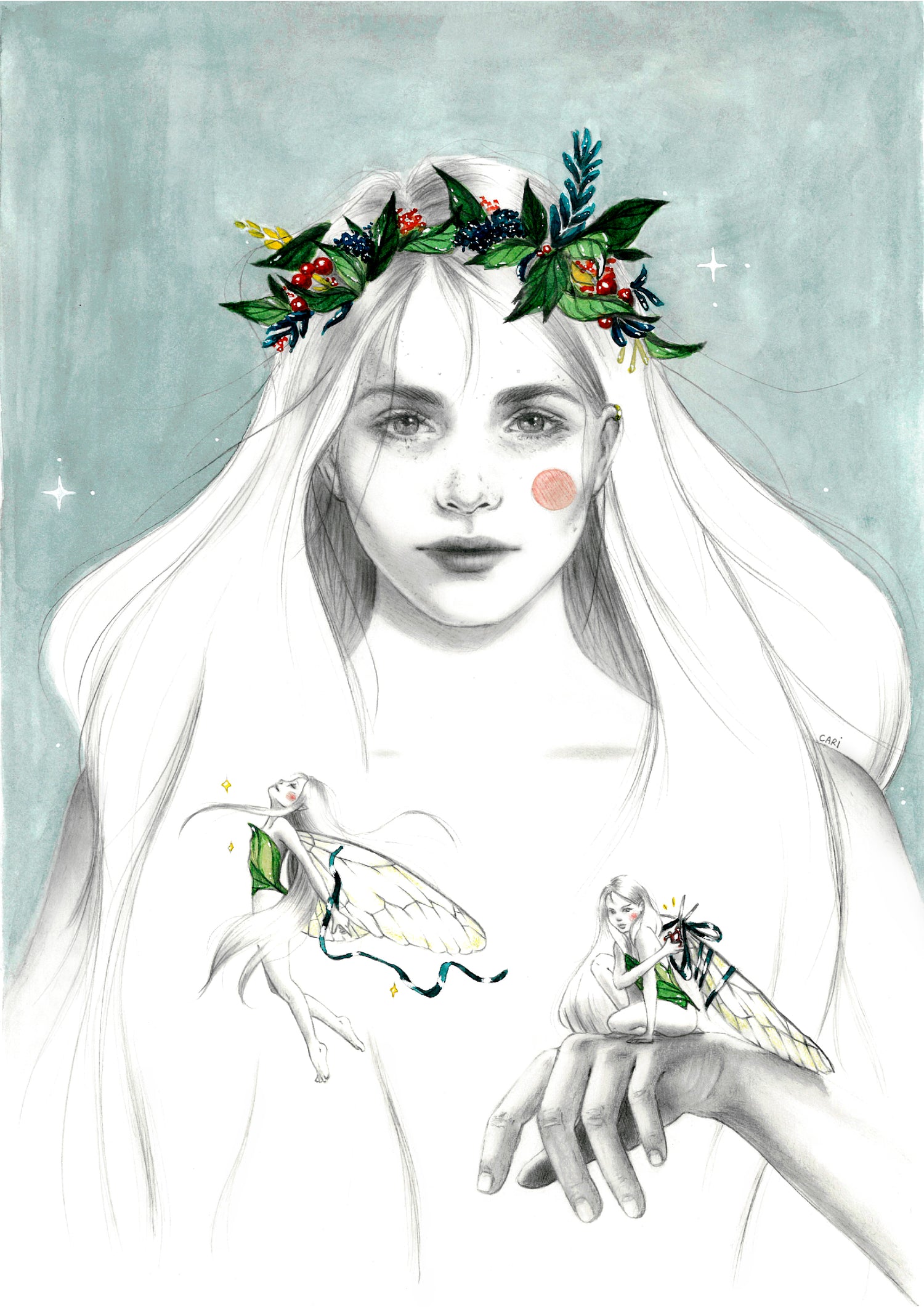 I create an original illustration (A3 size) in the style of my peliblanca girls exclusively for you. Their faces are always invented, but we play with the theme, the message and the coloring so that you have a creation that speaks of you and your vital moment.