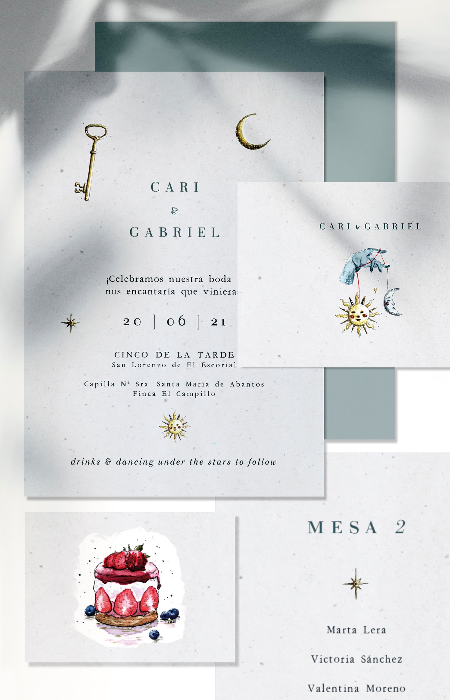 If you want a fairytale wedding, the key is to have a common thread in all the details. I design your wedding stationery set with illustrations that speak of you. Invitations, minutes, table numbers... everything with a clean, careful and full of personality design.