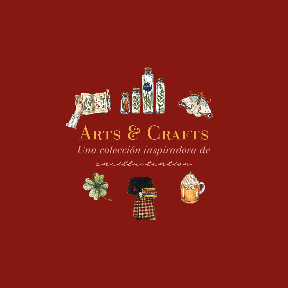 - Este diseño contiene ilustraciones de la colección Arts & Crafts Academia, realizadas a mano a tinta y acuarela.